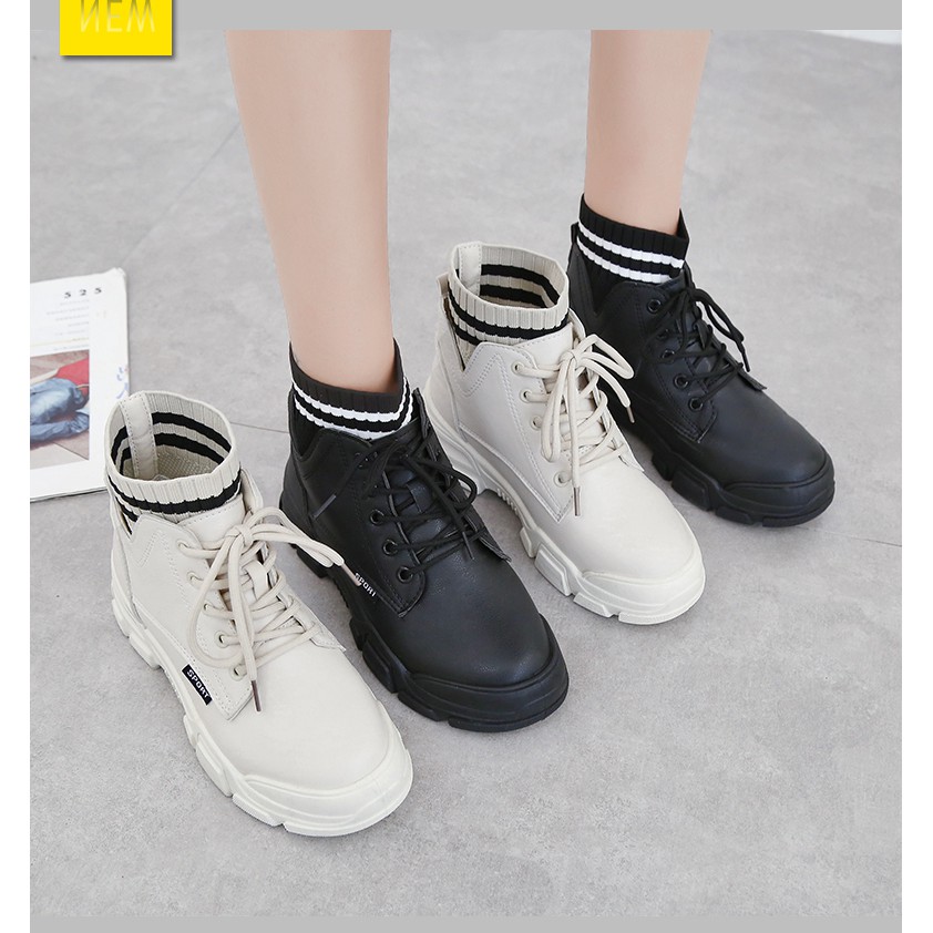 Giày bốt nữ FennnnĐiii - giày nữ boot nữ chelsea boot boots nữ cao gót màu đen da phối vải len cổ chun mv-451